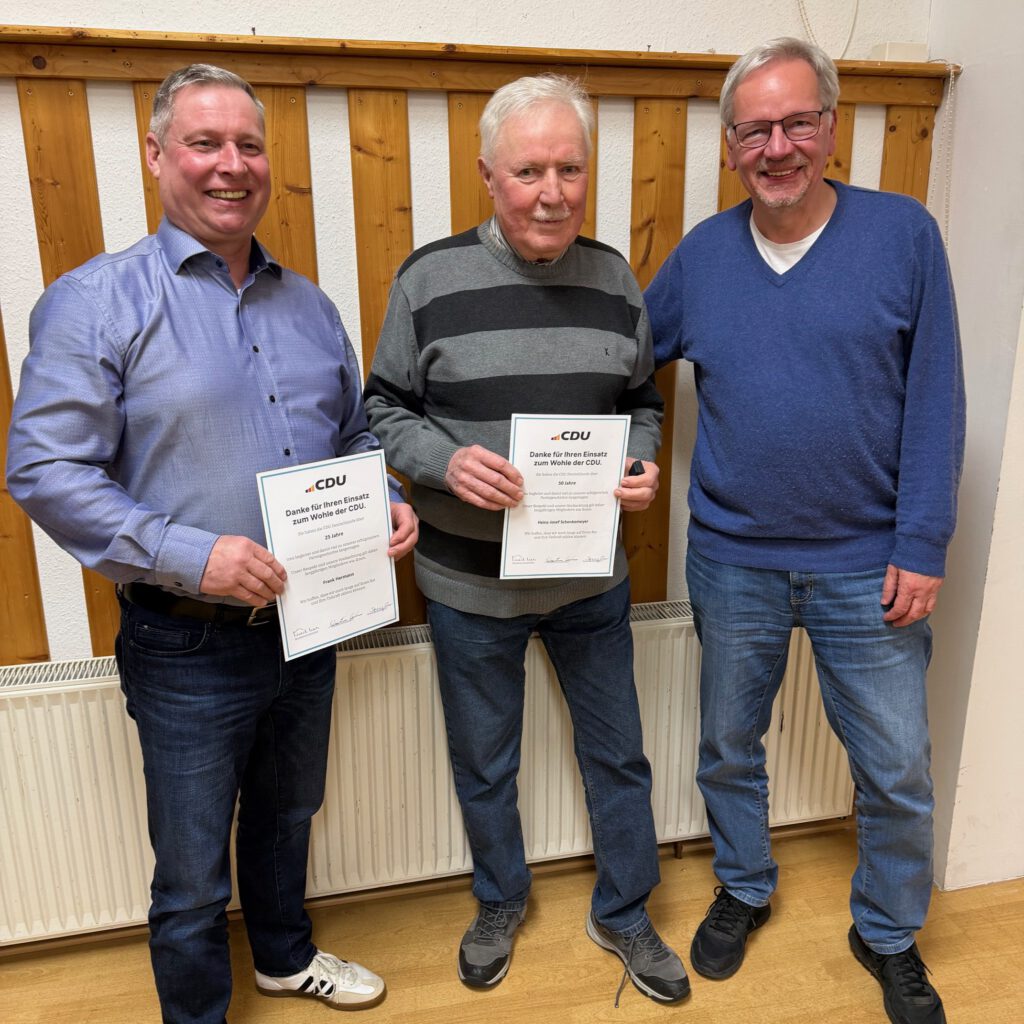 Im Ausblick warb der Vorsitzende für die einzelnen Veranstaltungen in diesem Jahr. Als nächstes findet die traditionelle Wanderung am 1.Mai statt. Außerdem gab Frank Neumann den Hinweis auf den monatlichen Dämmerschoppen, der bereits über 200-mal stattfand und bei dem – auch für Nichtmitglieder – immer die Möglichkeit besteht, regelmäßig und nicht nur vor Wahlen persönlich Kontakt aufzunehmen sowie Meinungen und Ideen auszutauschen. Apropos Wahlen: Die Kommunalwahlen im September sind sicher regional der spannende politische Höhepunkt des Jahres. Hier hofft die CDU auf eine gute Wahlbeteiligung und damit auch ein starkes Zeichen für die Demokratie vor Ort.